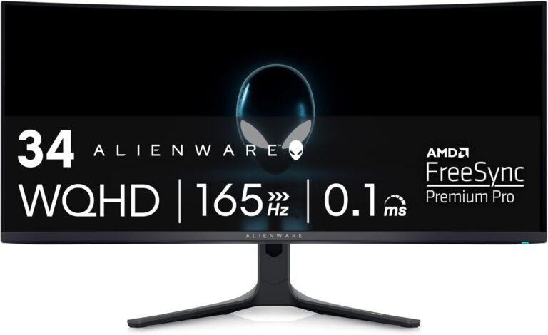 Alienware AW3423DWF Curved QD-OLED Gaming Monitor – 34-inch Quantum Dot OLED 0.1Ms 165Hz 21:9 Curved Display, 99.3% DCI-P3 Color Gamut, VESA DisplayHDR True Black 400, AMD FreeSync Premium Pro – Black
