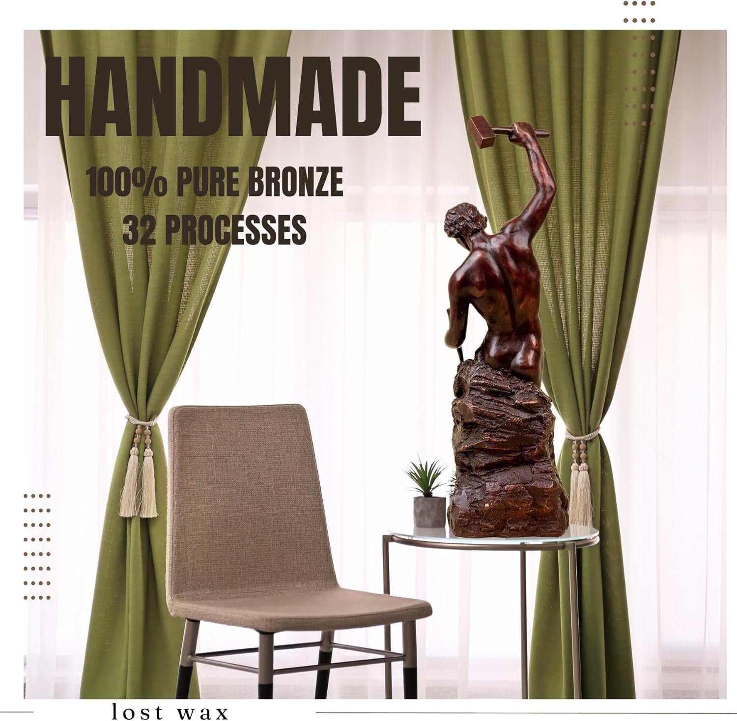 Diving deeper into the build quality, this piece feels solid and substantial. Made from bronze, it’s heavy enough that I won’t be worrying about it toppling over during a casual bump. The antique red finish gives it a classy yet modern look, blending seamlessly with our existing furniture. It measures 18.5 inches tall, which strikes a great balance—not too big to overpower the space, yet noticeable enough to catch the eye when someone walks in.