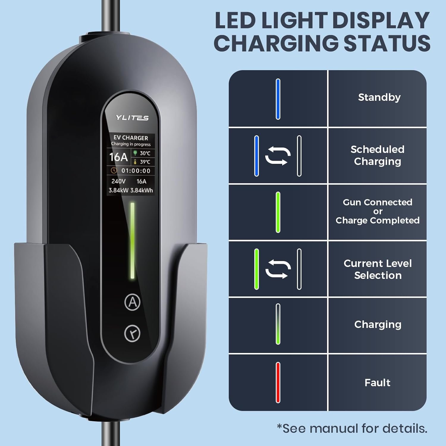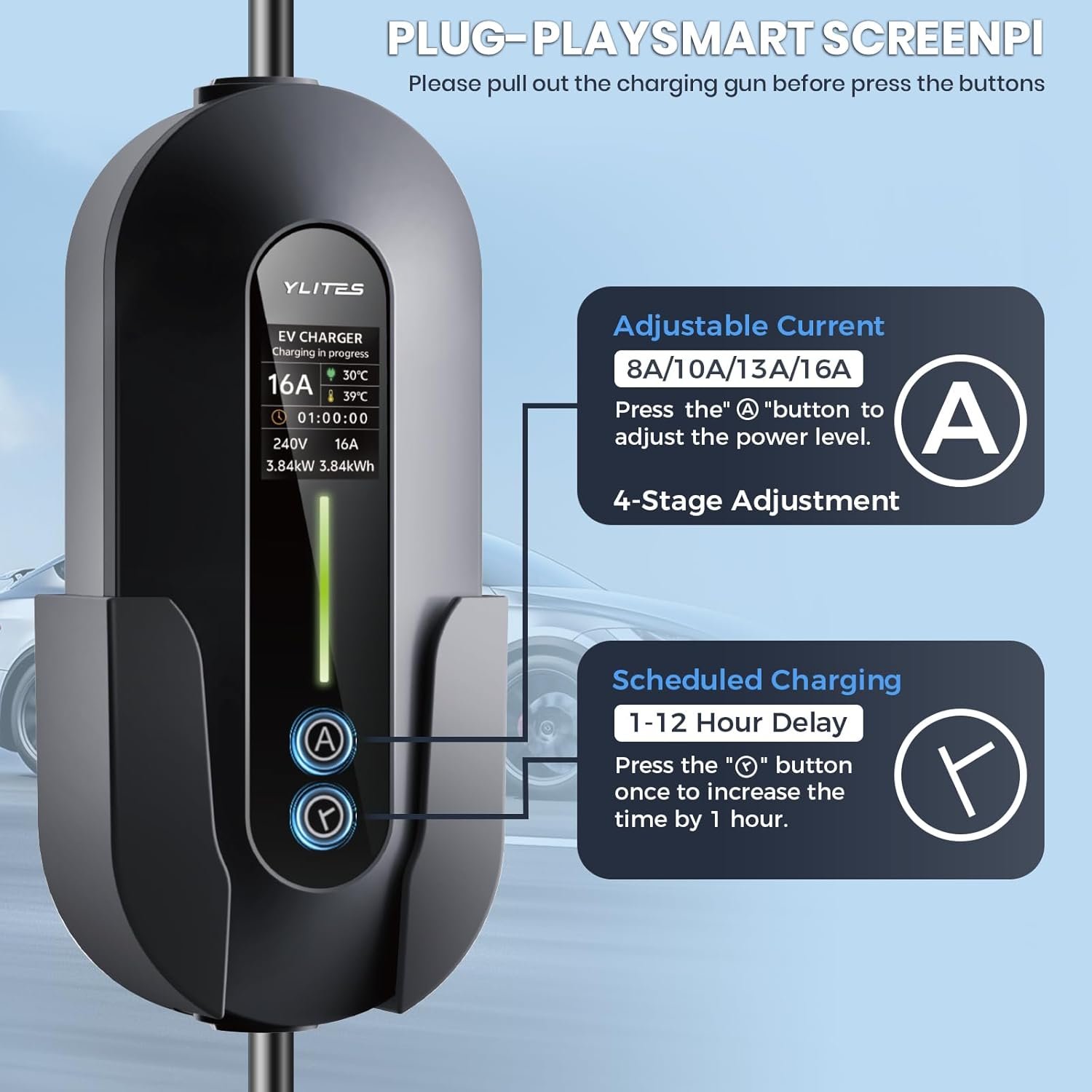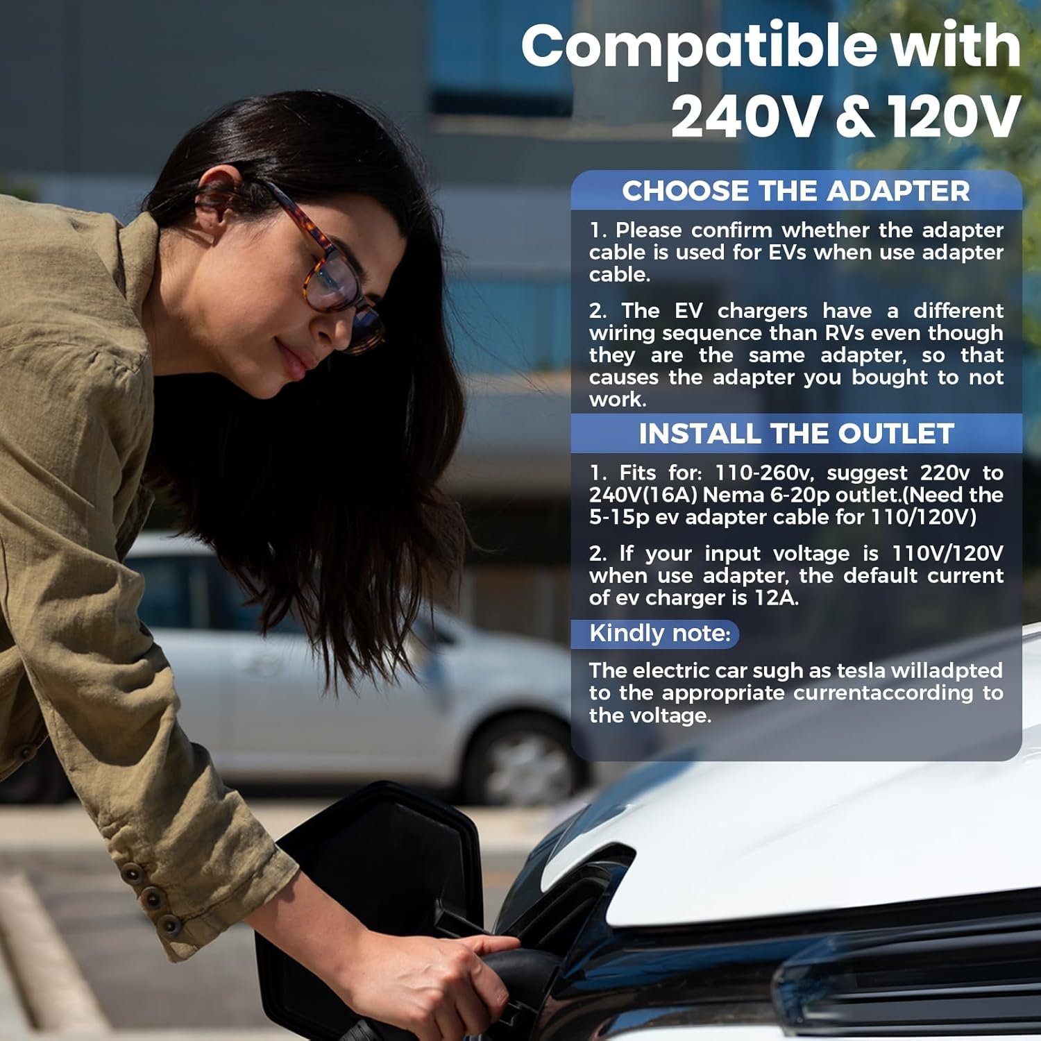 2026 Upgraded Level 1 & 2 Portable EV Charger, 25Ft J1772 Charging Cable, 8–16Amp Adjustable Current with Delay Start, 110–240V, NEMA 6-20 Plug with 5-15 Adapter, for All EVs & PHEVs