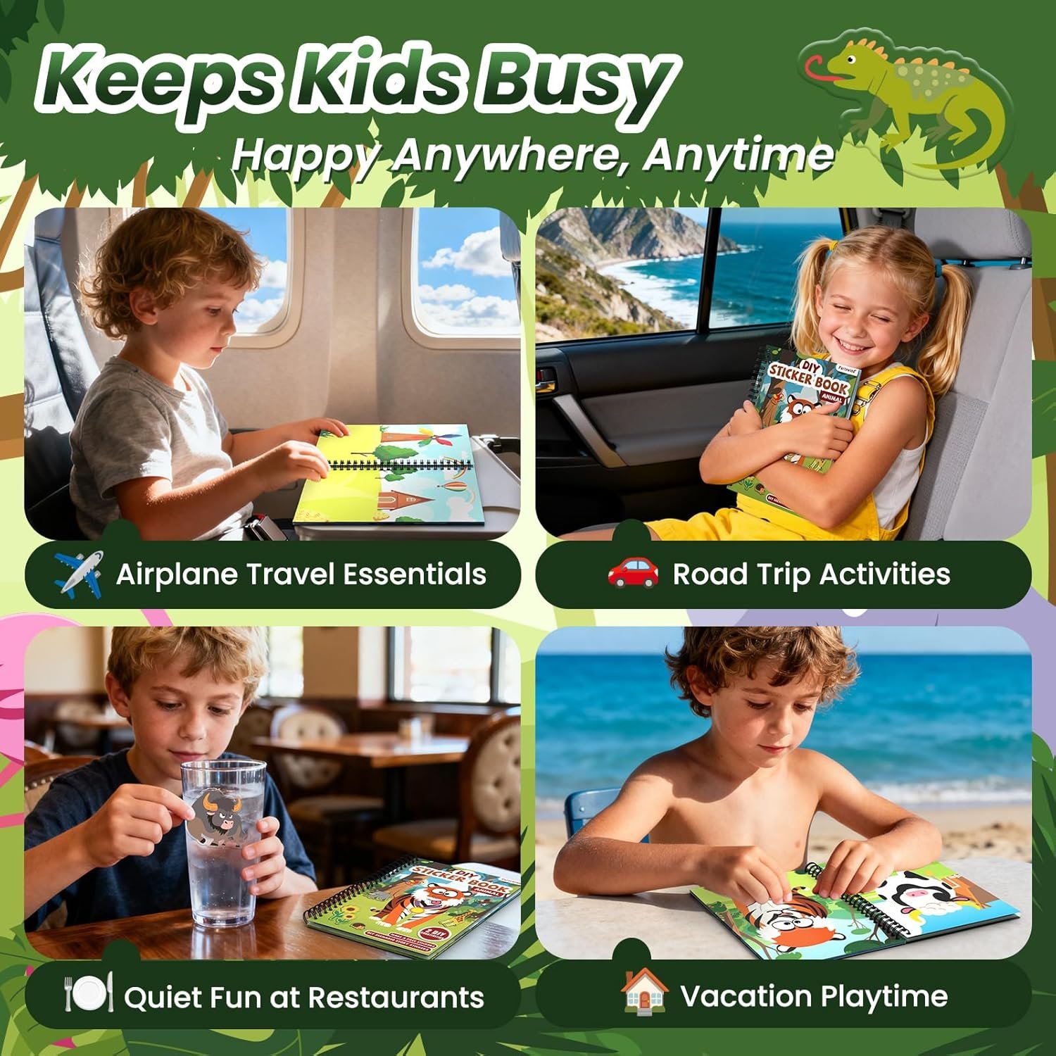 When I first stumbled upon the “Animals Reusable Sticker Book for Toddlers,” I wasn’t quite sure what to think. I have a couple of kids, aged 3 and 5, and I’m always looking for ways to keep them engaged, especially during long car rides. This sticker book caught my eye, and I decided to give it a go.