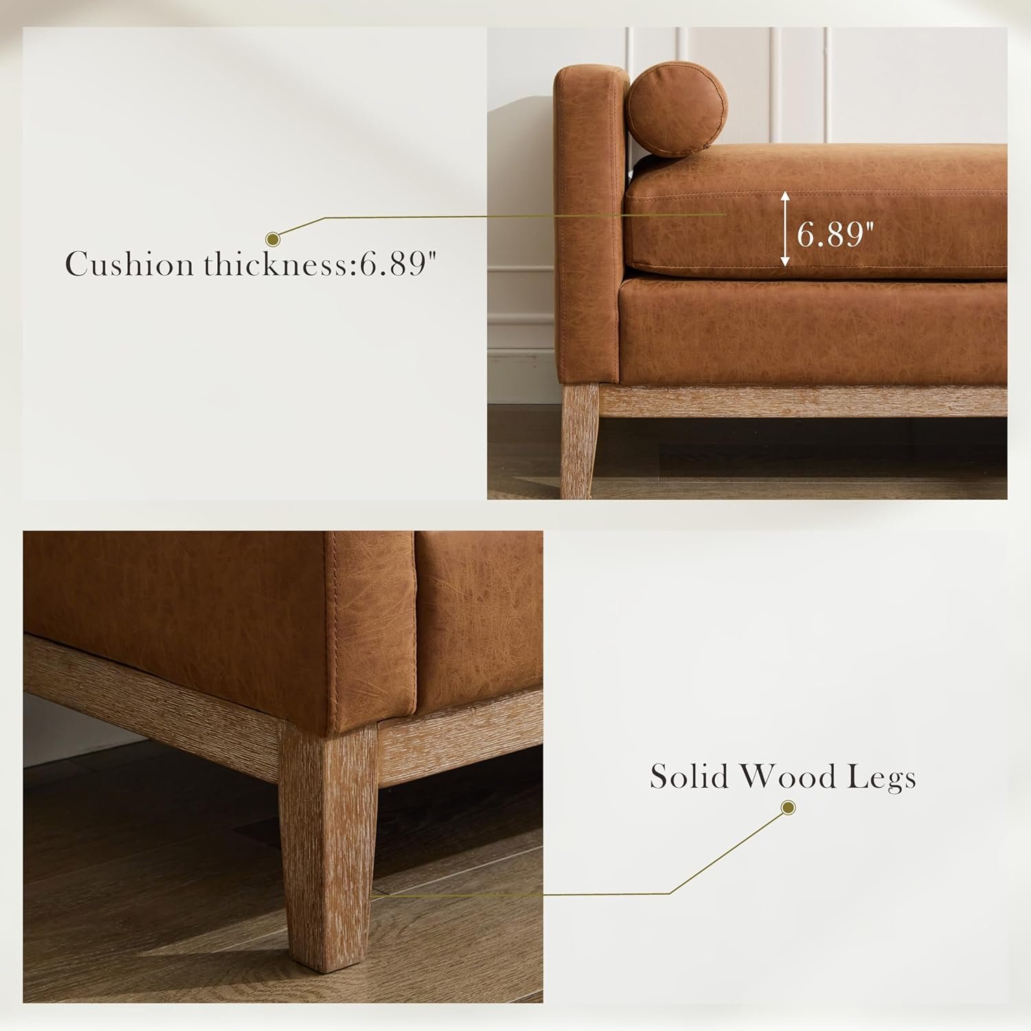 8 reviews for Aoiy & Wifon 66.34″ W End of Bed Bench, King Size Upholstered Bench with Pillows for Bedroom/Entryway/Living Room, Leather, Brown
