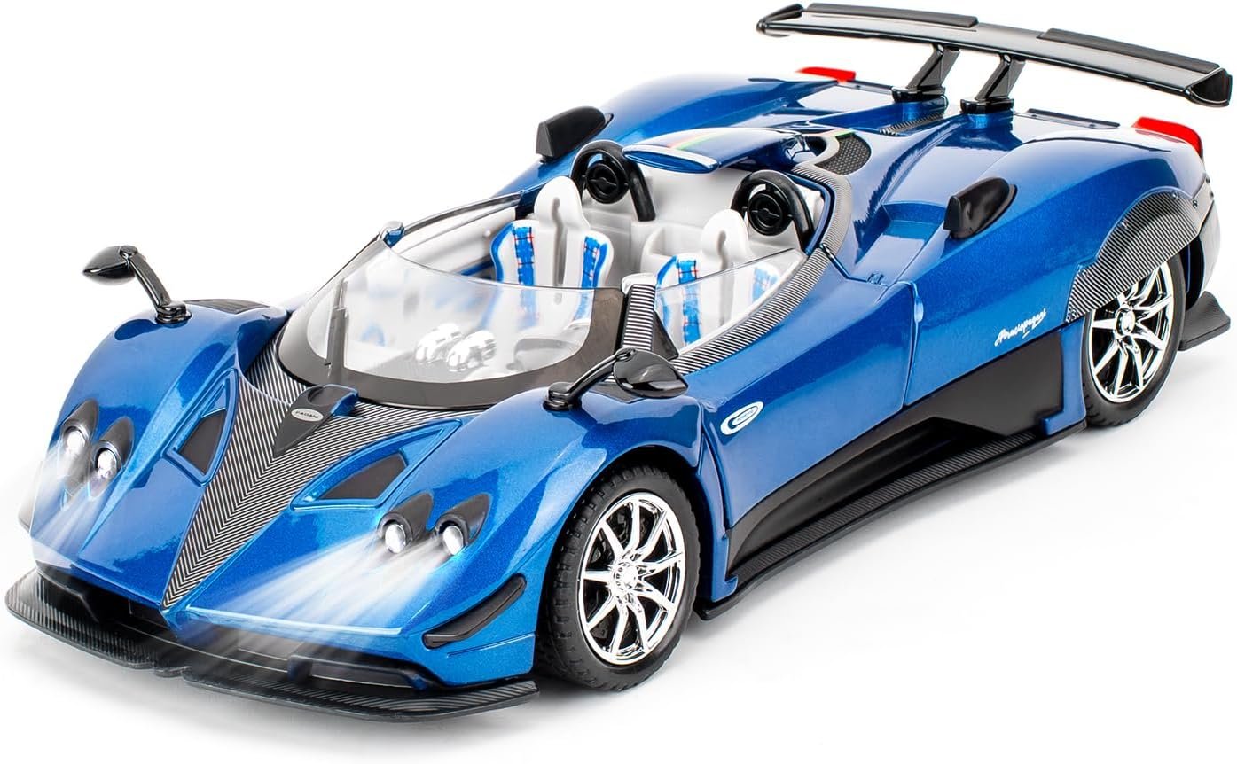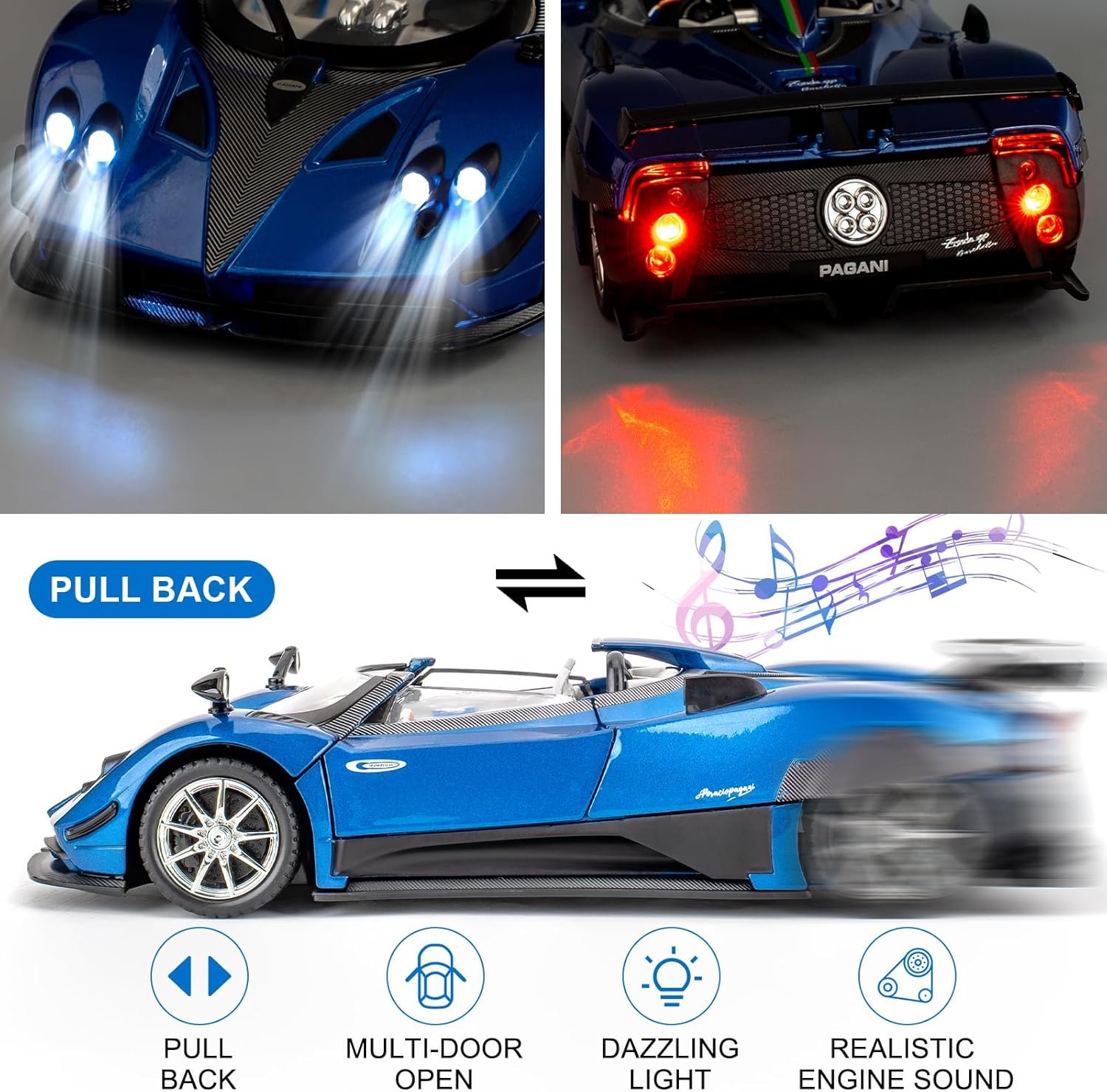 BDTCTK 1/24 Comapatible for Pagani Zonda HP Barchetta Model Cars Toy, Zinc Alloy Diecast Pull Back Toy Cars with Sounds and Lights Vehicles for Kids Boy Girl Gift (Blue)