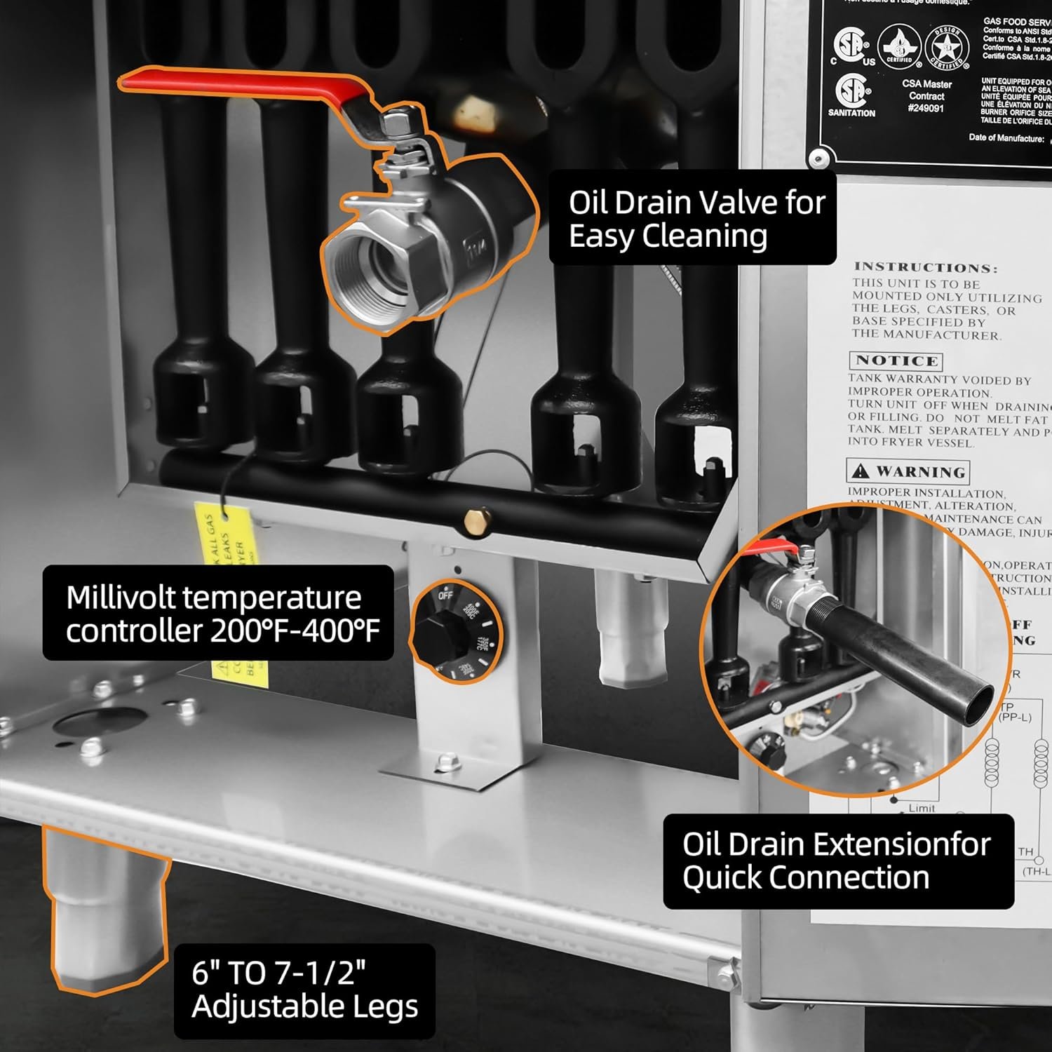 Performance-wise, I was really impressed. The heater fires up quickly, reaching the required temperature in no time. With a 120,000 BTU rating, it cooks food evenly and efficiently, meaning I’m not waiting around wasting time during busy hours. I’ve been frying everything from potatoes to chicken, and everything has come out perfectly crispy.