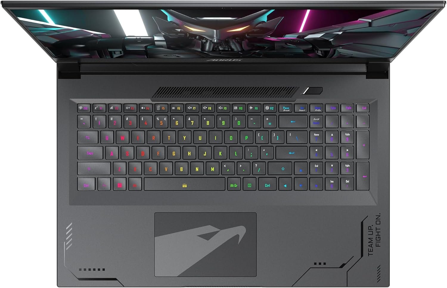 The AORUS 17X feels sturdy yet surprisingly lightweight for a gaming laptop of this size. The chassis has a premium feel, and the keyboard is well-spaced, giving a comfortable typing experience. The RGB lighting on the keyboard is customizable, adding to the visual appeal, and I loved showing it off to friends. One slight downside? The laptop tends to attract fingerprints, but that’s a minor trade-off for the aesthetics.