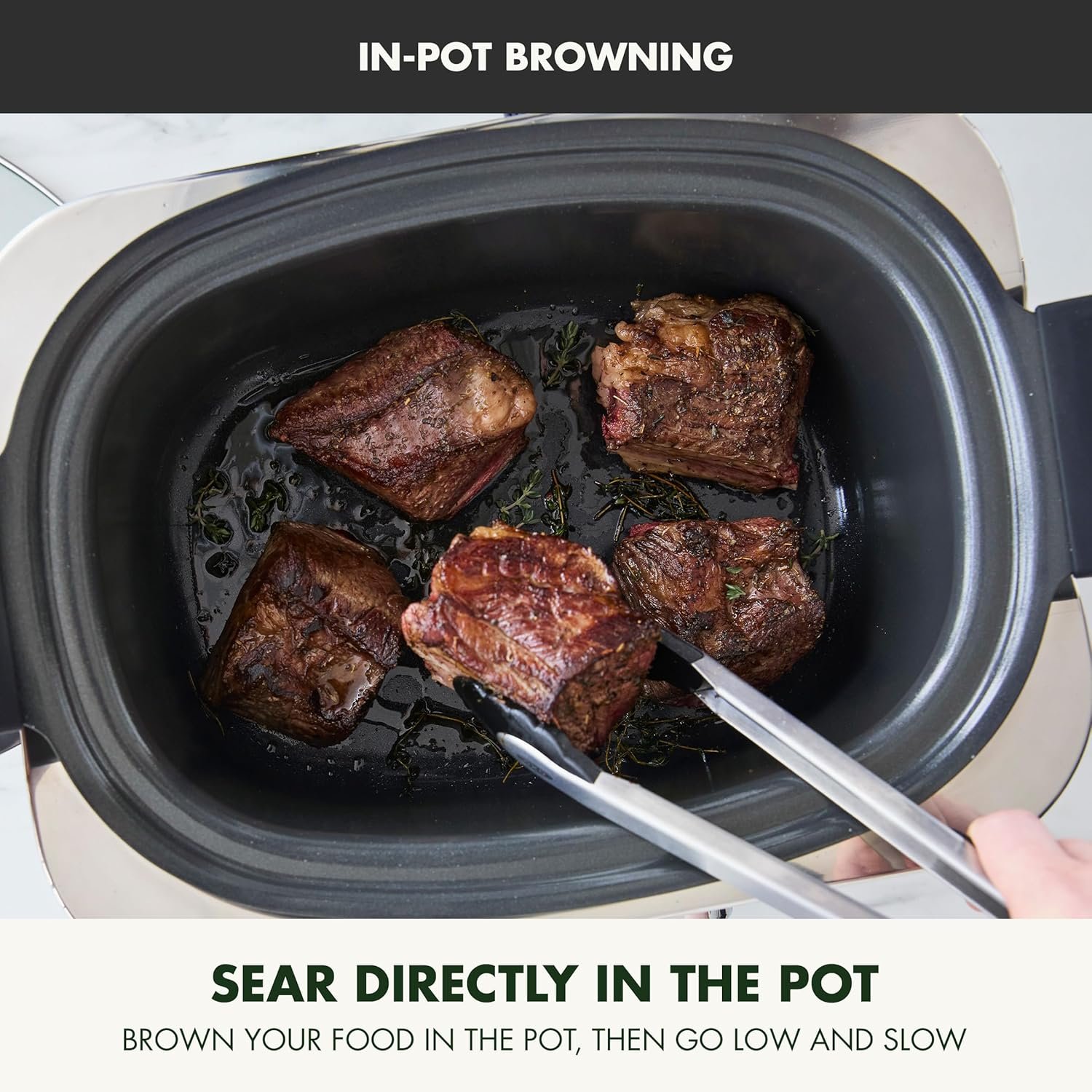 GreenPan Elite 14-in-1 Nonstick 6QT Electric Slow Cooker, PFAS-Free Ceramic Multi-Cooker, In-Pot Browning, Dishwasher Safe Lid & Removable Crock, Stainless Steel Steamer, Silicone Handles, Black