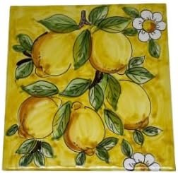 Handmade Italian Ceramic Tile with Lemons – Decorative Mediterranean Wall Art, Authentic Hand-Painted Majolica, Kitchen & Backsplash Accent, 6×6 Inch