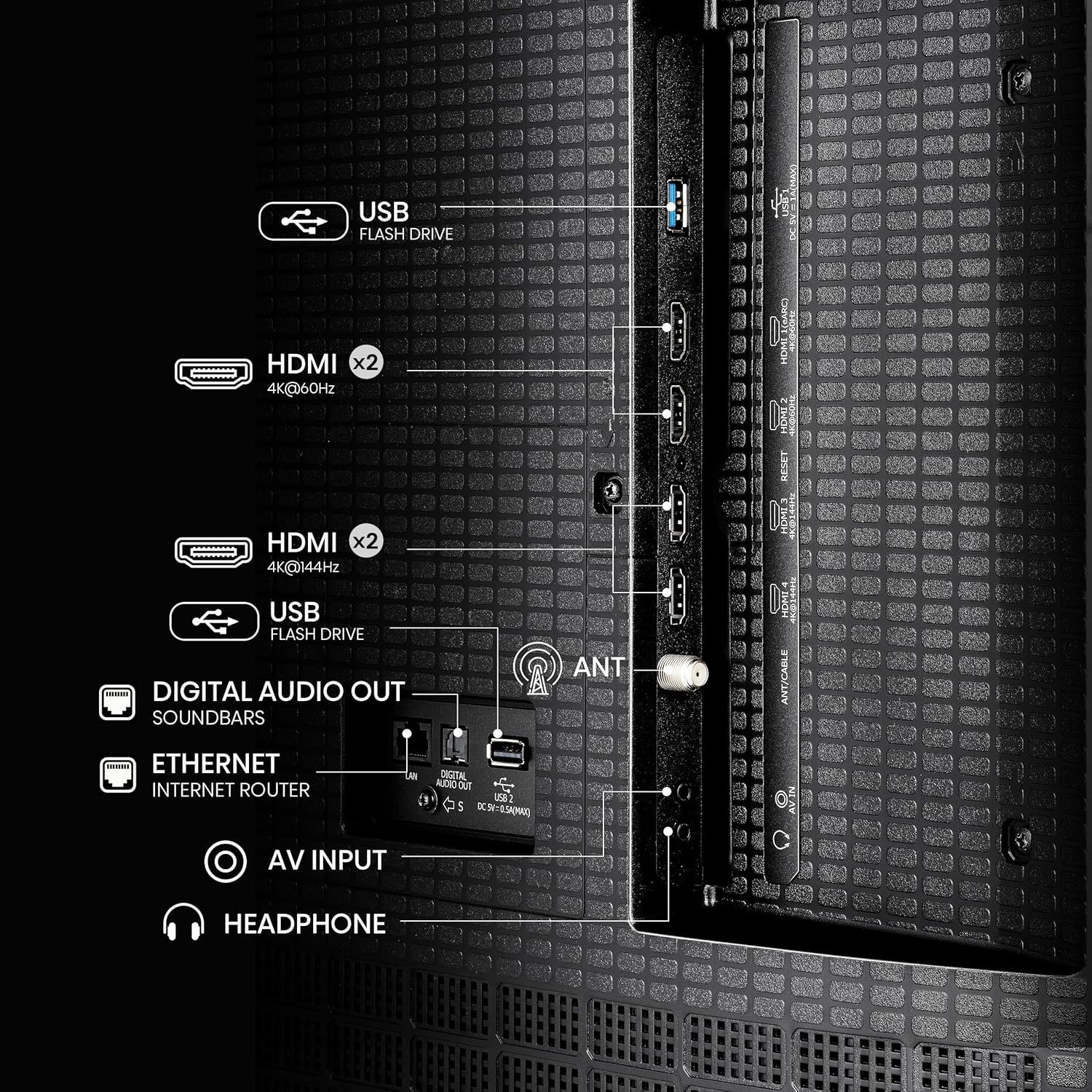 Built-In Subwoofer, Mini-LED, Native 144hz Panel, Up to 1000 nits Peak Brightness, Up to 600 Local Dimming Zones |