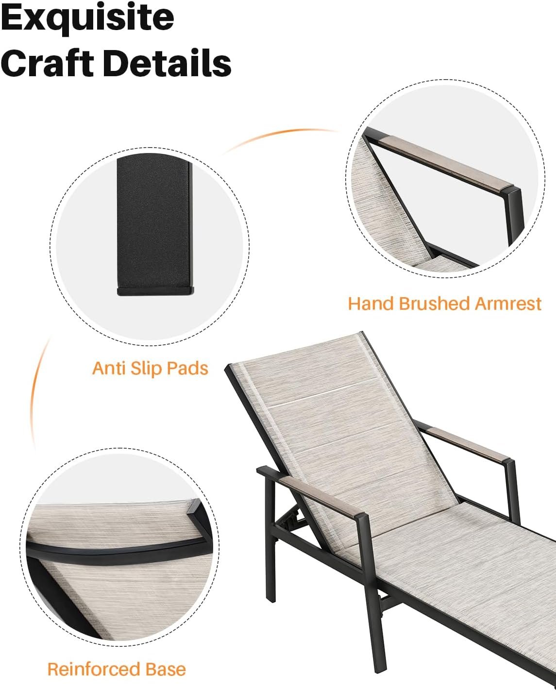 Outdoor Chaise Lounge, Never-Rust Aluminum Patio Lounge Chair, Double-Layer Textilene Pool Lounge Chair with 6-Position Adjustable Backrest, Sunbathing Lounger for Beach, Poolside, Deck, Yard