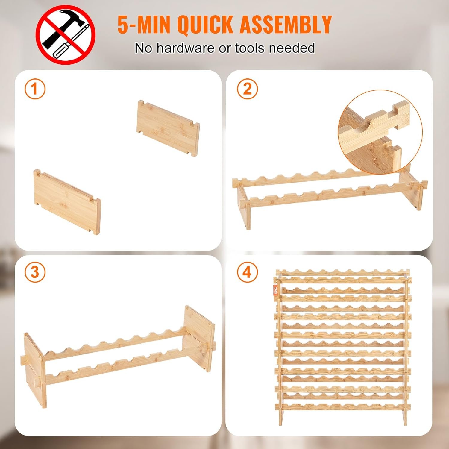 13 reviews for VEVOR 72 Bottle Upgrade Modular Wine Rack, Continuously Store Pinot Bottles, 8-Tier Bamboo Wood Storage Rack, Floor Freestanding Wines Holder Display Shelf, Wobble-Free Shelves for Kitchen Bar Cellar