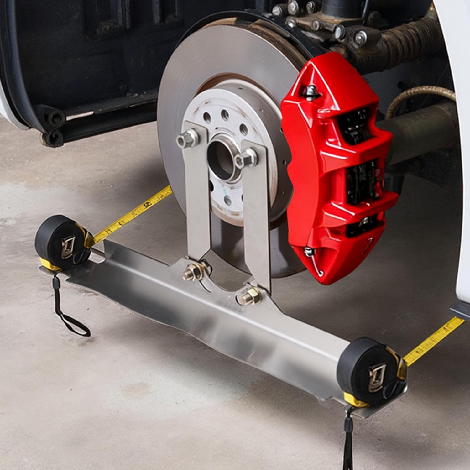 This tool is constructed from heavy-duty stainless steel, which is a huge plus for me. It feels robust enough to withstand the wear and tear from multiple uses without losing functionality. The design is pretty intuitive; the plates fit well under the wheels, and they include clear markers that help align everything properly. It’s well thought out for home mechanics.