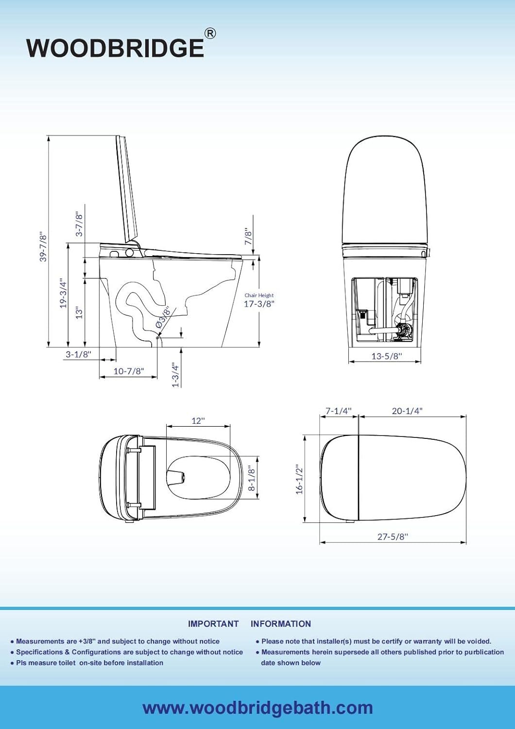 We purchased our Woodbridge SB-1000 smart toilet in July, and it has been an outstanding addition to our home ever since. The overall quality of construction and design feels premium. It fits seamlessly with our bathroom remodel and operates quietly and smoothly every time.The heated seat and adjustable bidet features make a noticeable difference in comfort, especially as the weather begins to turn colder. The water temperature and pressure settings are easy to customize, and the dryer feature is gentle but effective. The remote control is simple to use and intuitive.What stands out most is how reliable and low-maintenance the unit has been. The automatic nozzle cleaning and deodorizing functions keep it fresh, and the flush is both quiet and powerful. The night light and soft-close seat are thoughtful touches that make it feel like a true luxury appliance rather than just a fixture.We also appreciate the sleek, one-piece design, which makes cleaning around the base easy. It’s clear that Woodbridge focused on both aesthetics and function with this model. After several months of daily use, we’ve had zero issues.Overall, we’re very satisfied with the SB-1000 and would absolutely recommend it to anyone considering upgrading to a smart toilet. It’s one of those rare purchases that feels worth every dollar once you’ve lived with it.