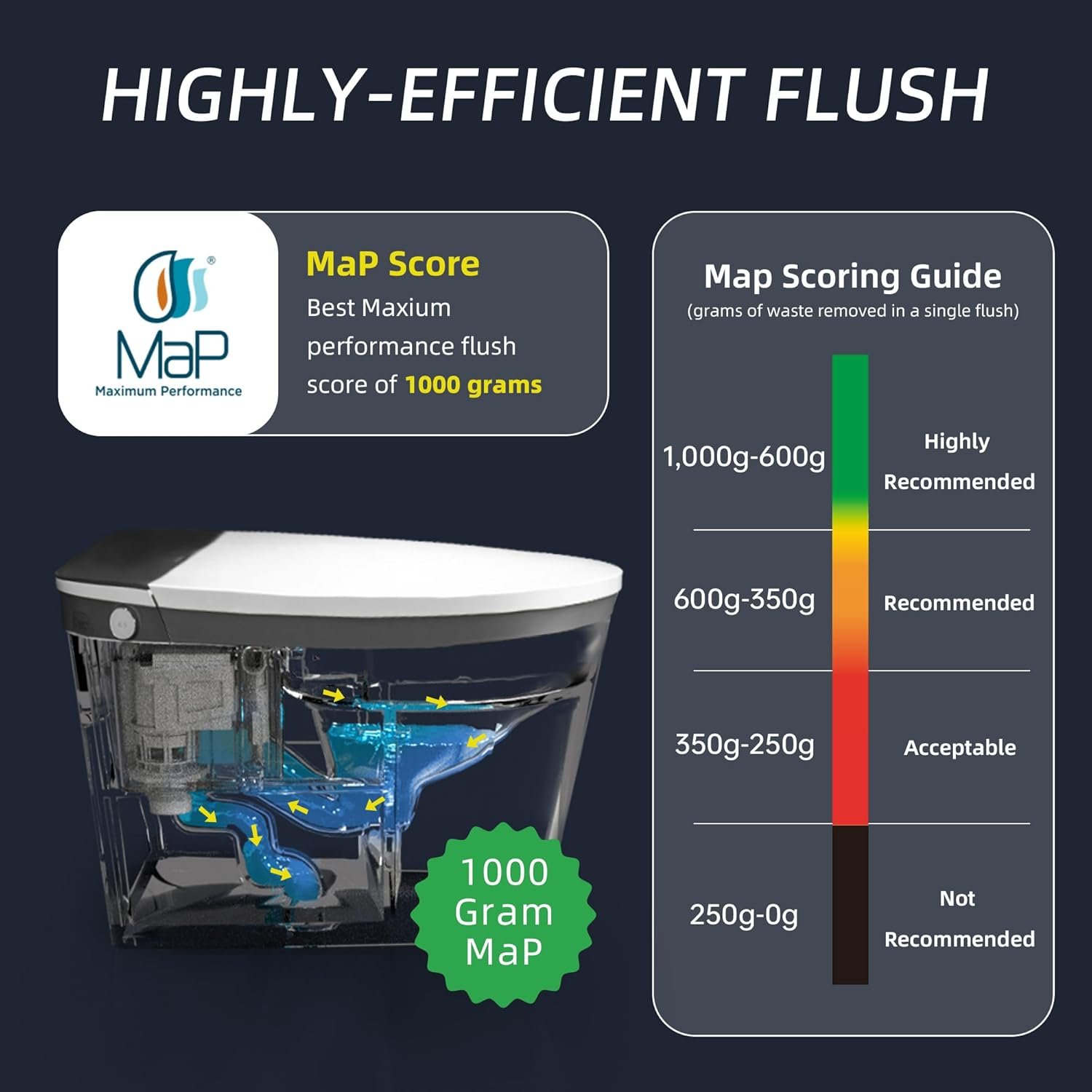 As for performance, I can’t express how convenient this toilet is. The automatic open and close feature took some getting used to, but now it’s a game-changer—especially during late-night bathroom runs. The heated seat is a luxury I didn’t know I needed until now. The flushing power is phenomenal; with a MaP flush score of 1000 grams, it handles everything effortlessly, which means I rarely have to flush more than once. You also have the foam shield feature, which reduces the frequency of cleanup, making maintenance a breeze.